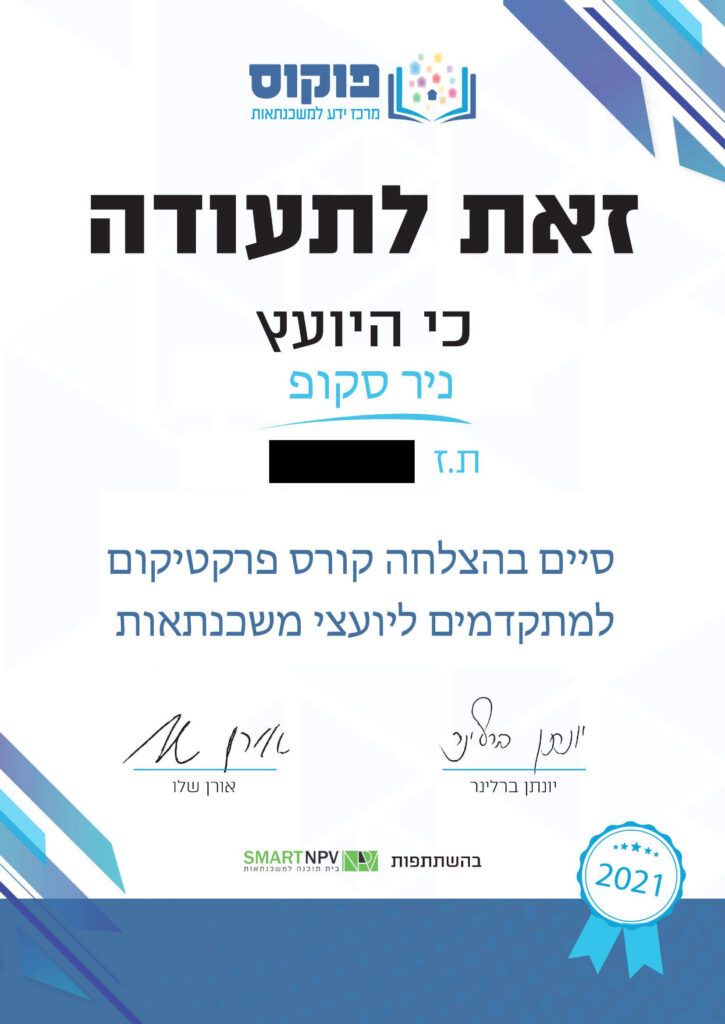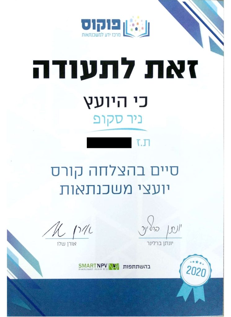 שלום, אני ניר סקופ. אב לחמישה ילדים, יועץ משכנתאות וכלכלת משפחה מוסמך, וחבר בהתאחדות יועצי המשכנתאות בישראל. אבל מעבר לתארים ולהסמכות – אני בן אדם שעבר מסע חיים שהפך אותו ליועץ אחר.
